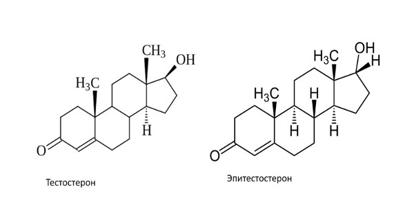 Рис.1. Химическая структура тестостерона и эпитестостерона [5]